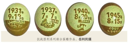 該系列作品遴選了“九一八事變”“七七盧溝橋事變”“百團(tuán)大戰(zhàn)”等12例抗戰(zhàn)歷史事件作為蛋雕素材,經(jīng)過20余天的構(gòu)思與精雕細(xì)刻,岳利民讓他的“家國(guó)情懷”成為了國(guó)家記憶的一部分。