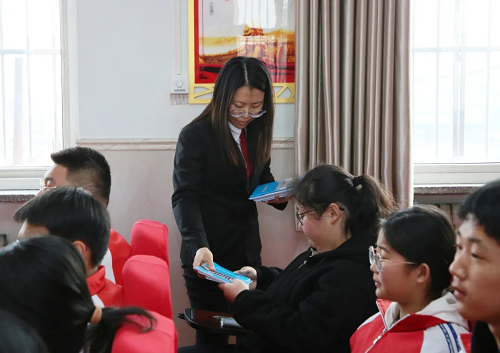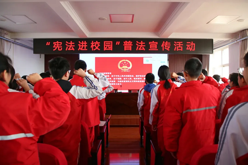 “我宣誓:忠于中華人民共和國憲法,維護憲法權(quán)威,履行法定職責(zé),忠于祖國、忠于人民……”授課結(jié)束后,全場人員緊握右拳,莊嚴(yán)宣誓,字字千鈞、擲地有聲的鏗鏘誓言在會場久久回蕩,充分表達了大家對憲法的信仰、尊崇與敬畏。隨后,法院干警向?qū)W生們發(fā)放了中院精心制作的憲法、平安建設(shè)、防范校園欺凌、未成年人保護、預(yù)防未成年人犯罪等法律知識宣傳手冊。