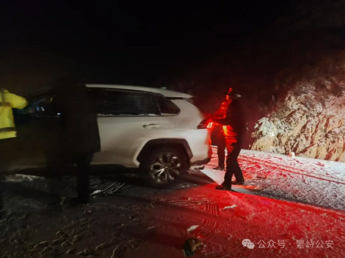 2024年11月25日晚18時,繁峙縣公安局指揮中心接到廣東游客趙岸華的報警求助電話,聲稱其一行四人駕車從河北來五臺山旅游,行至太行一號旅游公路神堂堡繁五交界路段時,因風雪交加、道路結冰,車輛和人員被困。接到報警后,指揮中心立即通知神堂堡派出所和交警中隊前往救助。救援民警頂風冒雪順著太行一號旅游公路沿路搜尋,經(jīng)過3個多小時的艱難跋涉,終于在神堂堡鄉(xiāng)盤道村往南約5華里的路上(已屬五臺山風景區(qū)地界)找到了被困車輛。當時該車燃油即將耗盡,車上四人凍得瑟瑟發(fā)抖,救援民警當即將3名乘客轉移至警車上,并協(xié)助拖車司機將被困車輛連上拖車后原路折返,最終在11月26日凌晨2時將被困游客和車輛安全營救回派出所。
