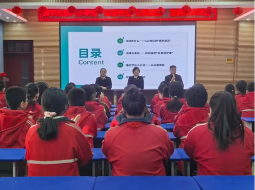 為進一步加強校園法治教育,增強學生的法治意識和自我保護能力,營造和諧安全的校園環(huán)境,2月20日,原平市檢察院第一檢察部檢察官任慧英走進原平市第八小學,以“知法守法 從我做起”為主題,給同學們帶來一堂生動有趣的法治教育課,通過案例講解、互動問答、宣誓簽名等形式,在孩子們心中播撒法治的種子。 課堂上,檢察官任慧英用通俗易懂的語言,向同學們講解法律的定義,并結合小學生生活場景,引導大家思考“班規(guī)與法律的區(qū)別”“如何用法律保護自己”。針對校園欺凌、網絡詐騙等熱點問題,通過真實案例傳授學生自我保護技巧。課后,在檢察干警的帶領下,全體學生高舉右拳,莊嚴宣誓,并在主題橫幅上鄭重簽名,許下爭當守法小公民的承諾。