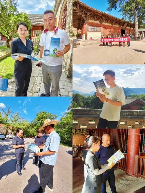 活動現場,法官干警向佛光寺工作人員及在場導游宣講了生態(tài)環(huán)境保護、文物古建保護的重要意義,倡導大家自覺遵守并積極推廣相關政策和法律法規(guī),耐心解答了現場游客提出的各類生態(tài)環(huán)境保護問題。同時,向游客普及文物保護相關法律法規(guī),鼓勵大家積極投身生態(tài)環(huán)境保護與文物保護工作,共同守護綠水青山,守護好文物古建。
