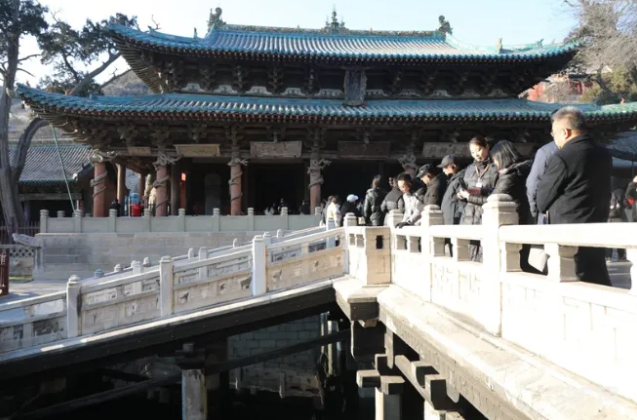 中國(guó)最早的水陸立交橋——魚沼飛梁。魚沼飛梁西依圣母殿,東鄰獻(xiàn)殿,初建在北魏之前。飛梁的形式古樸,橫跨于魚沼之上,借以觀賞景物,南北東西四面伸長(zhǎng),如鳥之振翼欲飛狀,是中國(guó)少有的一種十字橋梁形式,被譽(yù)為中國(guó)最早的水陸立交橋。