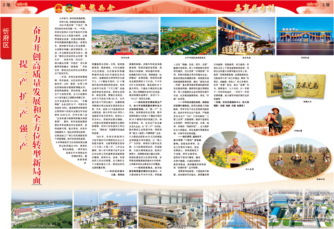 一年來,忻府區(qū)堅持統(tǒng)籌兼顧、承壓奮進,全區(qū)經(jīng)濟運行平穩(wěn)有序,GDP、固投、社零三項經(jīng)濟指標(biāo)絕對值繼續(xù)領(lǐng)跑全市。堅持因地制宜、深化轉(zhuǎn)型,新質(zhì)生產(chǎn)力加快發(fā)展,全力以赴做好24個省市重點工程服務(wù)保障工作,全年完成投資123.15%,“專精特新”企業(yè)達到18戶,年度任務(wù)完成率100%,溫泉康養(yǎng)和資源再生利用兩個市級專業(yè)鎮(zhèn)全年完成營收14.68億元,忻州古城入選“全省非遺與旅游深度融合典型案例”,頓村、奇村省級旅游度假區(qū)評審成績名列全省前茅。堅持創(chuàng)新引領(lǐng)、重點帶動,改革步伐穩(wěn)健有力,國企改革深化拓展,區(qū)糧油加工廠等公司實現(xiàn)國有資產(chǎn)保值增值,醫(yī)療改革成效顯著,鄉(xiāng)村兩級醫(yī)療衛(wèi)生機構(gòu)標(biāo)準(zhǔn)化建設(shè)達標(biāo)率超過95%,教育改革扎實推進,一職中成為省高水平中等職業(yè)學(xué)校建設(shè)單位,整體教育教學(xué)質(zhì)量穩(wěn)居全市第一方陣。堅持穩(wěn)糧保供、提質(zhì)增效,鄉(xiāng)村全面振興扎實推進,全區(qū)糧食作物播種面積完成2024年指標(biāo)任務(wù)的105%,鹽堿地綜合利用項目全面開工,5個精品示范村、22個提檔升級村取得階段性成效,榮獲全省學(xué)習(xí)運用“千萬工程”經(jīng)驗成效明顯先進市縣。堅持生態(tài)保護、綠色發(fā)展,厚植生態(tài)底色,全年大氣優(yōu)良天數(shù)281天,全年重污染天氣同比減少,定襄橋國考斷面水質(zhì)達地表水Ⅲ級優(yōu)良水質(zhì),中央、省級2.8萬畝造林任務(wù)全部完成,南云中河EOD項目入選國家示范支持項目。堅持以人民為中心、積極回應(yīng)群眾期盼,人民群眾獲得感幸福感安全感持續(xù)增強,老舊小區(qū)改造完工率達91%,“煤改電”鞏固提升改造成效顯著。