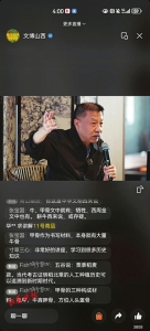 從山西古代壁畫隱藏的密碼、傳統壁畫艷麗制作工藝的挖掘研究,現場觀眾聽得津津有味、頻頻點頭,直播間網友更是踴躍留言、頻繁互動,網友@寸草三心留言:“非常好的講座,學習到很多歷史知識”;還有網友留言探討山西古代壁畫的重要價值。直播收尾前,如何更好地保護山西低等級壁畫?介子平老師表示,文物不分“高低”,每個人審美不一樣,無論是低等級別還是其他級別,山西古代壁畫都值得大家去保護、去珍藏、去解讀;史宏蕾教授也呼吁,大家一定要關注那些散落在鄉(xiāng)間田野里的低等級壁畫,低等級壁畫中也有極其重要的價值。
