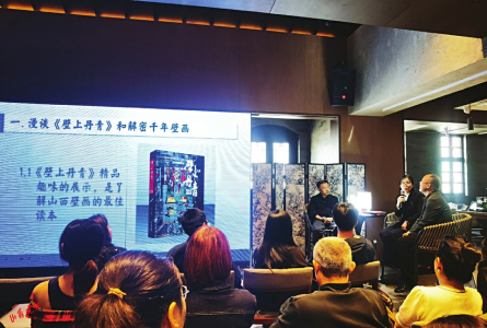 古代壁畫與文人畫區(qū)別有哪些?介子平老師表示,文人畫常常將詩書與繪畫結合,文人畫的出現,開創(chuàng)了另外一種審美,也顛覆了專業(yè)的畫家和工匠的畫作屬性。什么是山西古代壁畫背后的密碼?董曉寧老師介紹,山西古代壁畫不僅隱藏著藝術的元素,還有許多科技的密碼,更蘊藏著民俗生活百態(tài),壁畫堪稱為“行走的百科全書”。史宏蕾教授表示,從吳道子到永樂宮、廣勝寺壁畫,可以看到山西古代壁畫的線條、色彩特點,她強調,壁畫本就是中國畫,原材料、顏料屬性也是研究壁畫不可忽視的重要環(huán)節(jié)之一。山西古代壁畫色彩艷麗、十分華麗,其實和山西當地的顏料土壤不可分。談到壁畫中的女性形象,介子平老師介紹,大家會發(fā)現,男畫家在畫女性,女畫家也在畫女性。從服飾、頭飾、動作、神態(tài)等方面,可以看到壁畫中的女性形象有圣母、伶人、樂手、女官等不同角色,她們極具生命力、表現力。