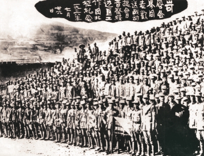 圖10 1938年1月,八路軍第一一五師主力開辟晉西南抗日根據(jù)地。圖為羅榮桓(二排左三)、楊尚昆(二排左二)等在孝義。