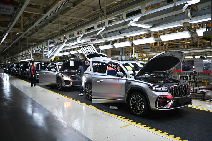 來到浙江吉利控股集團設在西安的整車生產(chǎn)基地,基于強大的數(shù)字平臺和智能化設備,這里可實現(xiàn)24小時不間斷“黑燈生產(chǎn)”,不同設備、機器人之間自主協(xié)調(diào)運作、靈活響應,沖壓、焊接、噴涂自動化率均達到100%。